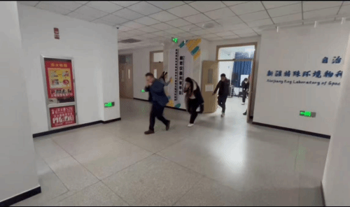 下午16:30,急促的火警警报声骤然响起,演练正式拉开帷幕:疏散逃生环节:模拟实验室某楼层发生“电气短路起火、浓烟迅速扩散”的场景,各区域人员迅速弯腰低姿,沿预定逃生路线有序撤离。引导员在楼梯口、走廊交汇处实时疏导,全程无拥挤、无停留,70余人仅用时1分47秒即全部抵达安全区域。随后,各小组清点人数并上报,人员到齐率高达100%。